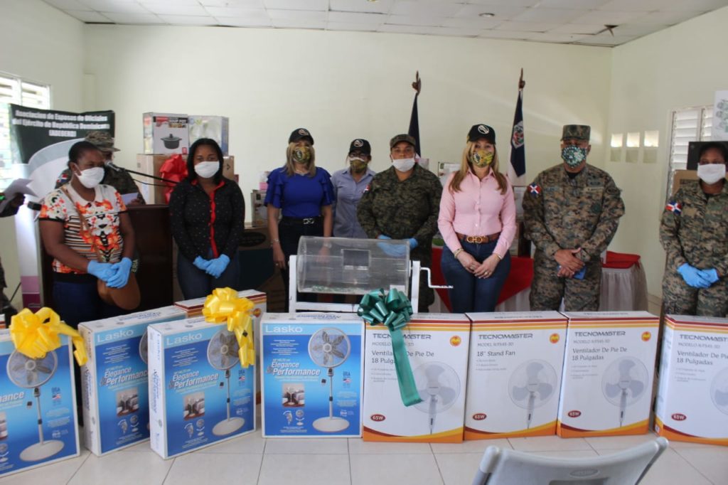 SANTO DOMINGO, RD.- Al conmemorarse este domingo 31 de mayo el día de las madres, la Licenciada Verónica Marte de Gonell, junto a las demás damas de ADEOERD, realizaron entregas de regalos a las madres de la 3era. y 5ta. Brigada de Infantería del Ejército con asiento en las provincias de San Juan y Barahona respectivamente; en un ambiente de covidianidad y respeto a las medidas sanitarias de seguridad recomendadas por las autoridades de salud pública del país y la OMS, las madres militares disfrutaron de un compartir en el que recibieron regalos de electrodomésticos como neveras, televisores, estufas, entre otros, así como logística de alimentos.