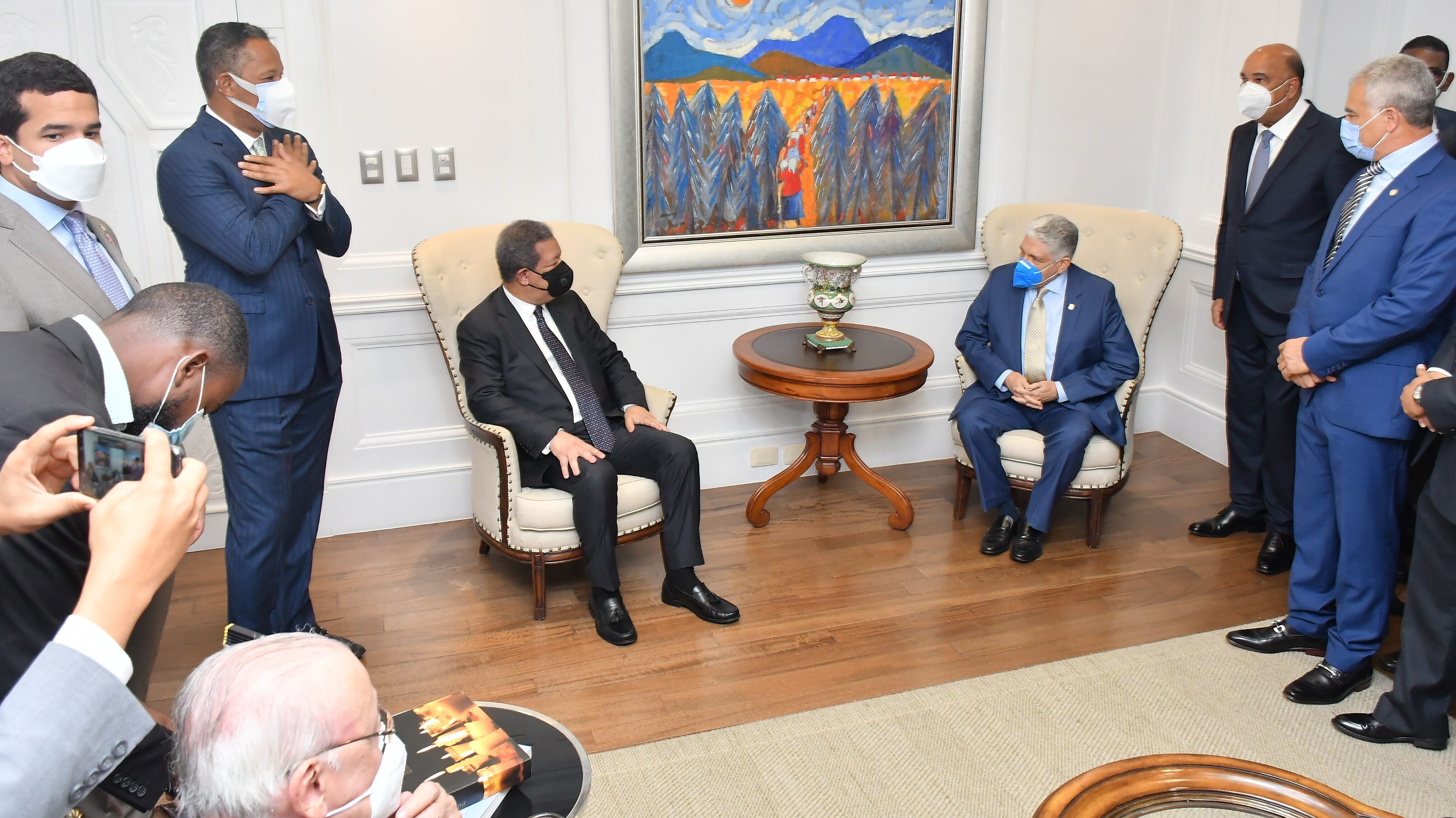La visita tuvo lugar antes de la inauguración del local donde está el Bloque de Senadores de la Fuerza del Pueblo, el cual fue habilitado en el cuarto nivel del Senado de la República.