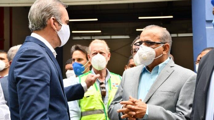 El presidente Luís Abinader se hizo acompañar por la vicepresidenta Raquel Peña, por Mario Lama, director del Servicio Nacional de Salud, entre otros funcionarios, ingenieros de la obra y sectores gremiales y civiles.