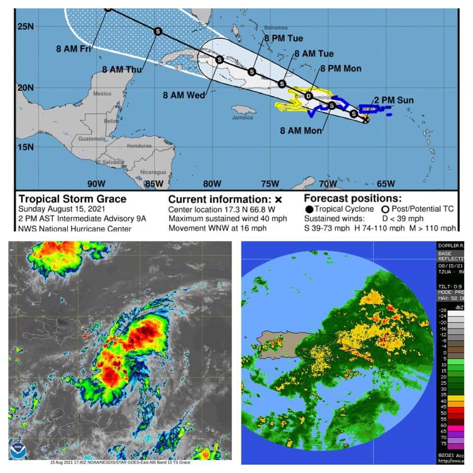Según la directora de la Oficina Nacional de Meteorología (Onanmet), la trayectoria de la tormenta tropical Grace a las 2:00 de la tarde indica que la misma estará sobre la ciudad de Santo Domingo la mañana del lunes.