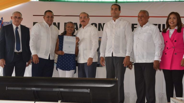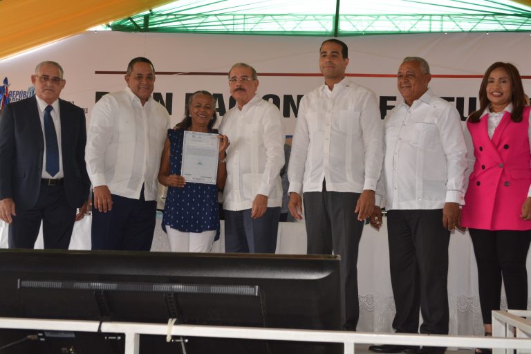 ESPERANZA, Valverde.- El presidente de la República Danilo Medina entregó 1,591 títulos definitivos de parcelas y solares a igual número de beneficiarios de las provincias Valverde y Montecristi, que abarcan una superficie de 2 millones de metros cuadrados.