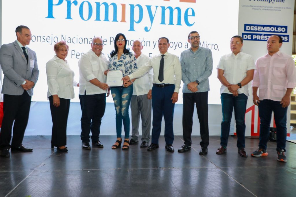 Los créditos fueron otorgados por el director de Promipyme, Fabricio Gómez Mazara, en un evento realizado en el Club Multiuso Víctor Burgos de Sabana Perdida, en Santo Domingo Norte.