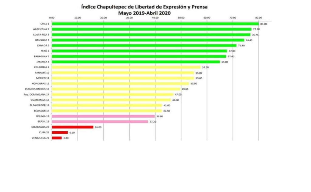 La Sociedad Interamericana de Prensa (SIP) presentó este martes el Índice de Chapultepec de Libertad de Expresión y de Prensa, que muestra cómo la República Dominicana pasó, en el período 2020-2021, al lugar número cuatro de las naciones en las que se percibe una baja restricción de la libertad de expresión, contrario a la medición realizada para 2019-2020, cuando le fue otorgado el lugar 14.