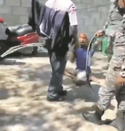 Este hecho que circula por las redes sociales ocurrió en la comunidad Sabana Yegua, provincia Azua, donde se observa a dos agentes propinando latigazos al tiempo que le reprochan que no continúe cometiendo robos en la zona.