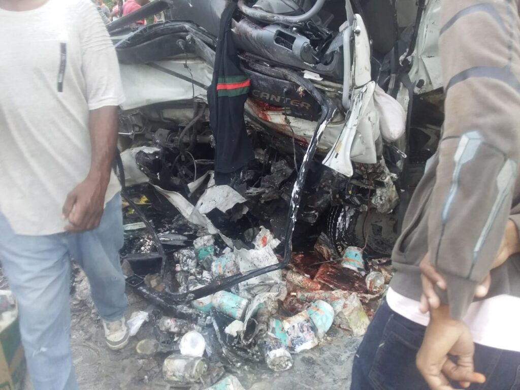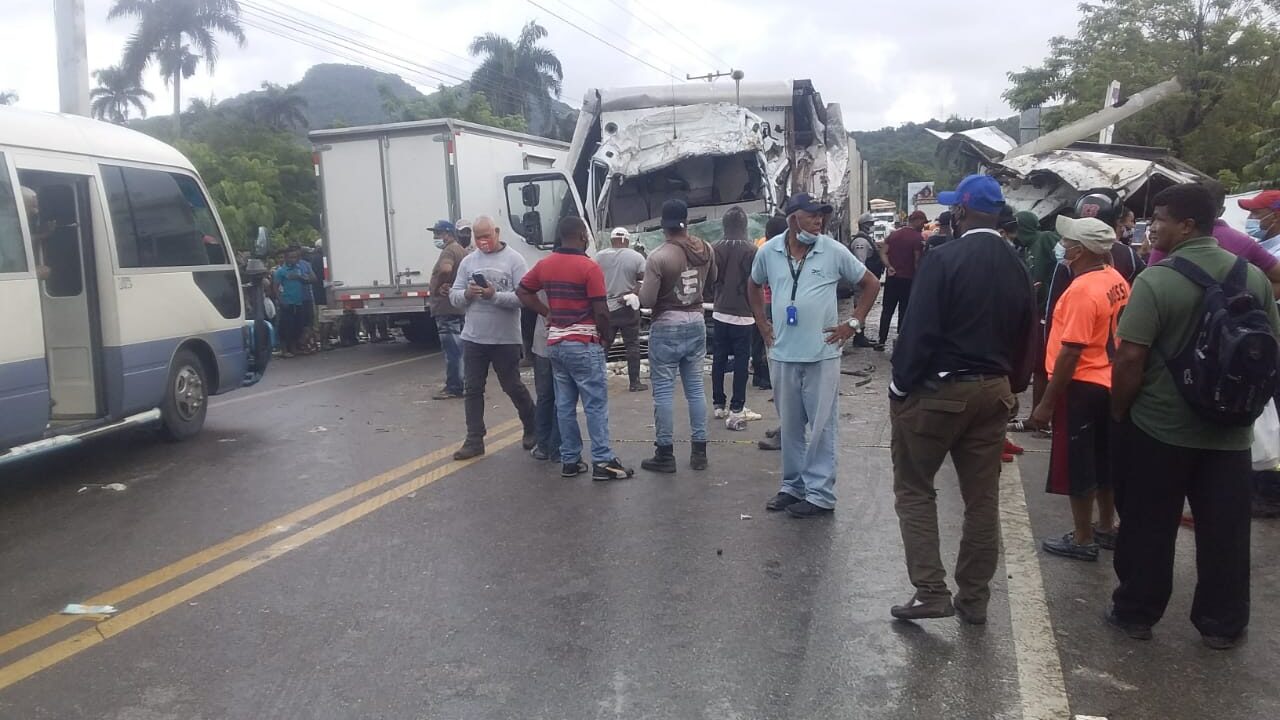 El accidente ocurrió cuando dos camiones de una empresa licorera y otro de distribución de productos de belleza chocaron de frente en la referida vía.