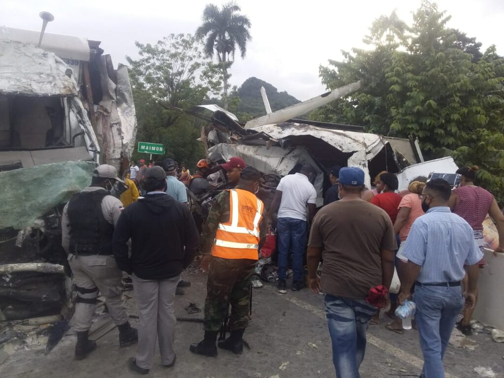 Santo Domingo.- Tres personas fallecieron y dos resultaron heridas en un accidente de tránsito ocurrido esta madrugada en la carretera Puerto Plata, Imbert tramo Maimón.