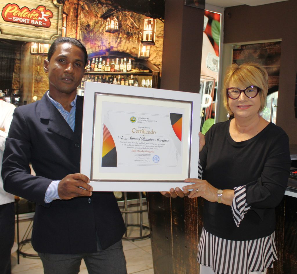 En esta ocasión, fueron reconocidos un total de 27 empleados que desempeñan labores de secretario y secretaria en UTESUR. Entre ellos se encontraban María Antonia Pérez Nova, Decana Académica; Gregorina Ortiz, encargada de Eventos y Protocolo; Ismael Santos, encargado del Departamento Técnico; Rafael Paulino, encargado de Asuntos Legales; y las contadoras de la institución, Sheila Mella y Evelin Josefina Núñez Mejía.