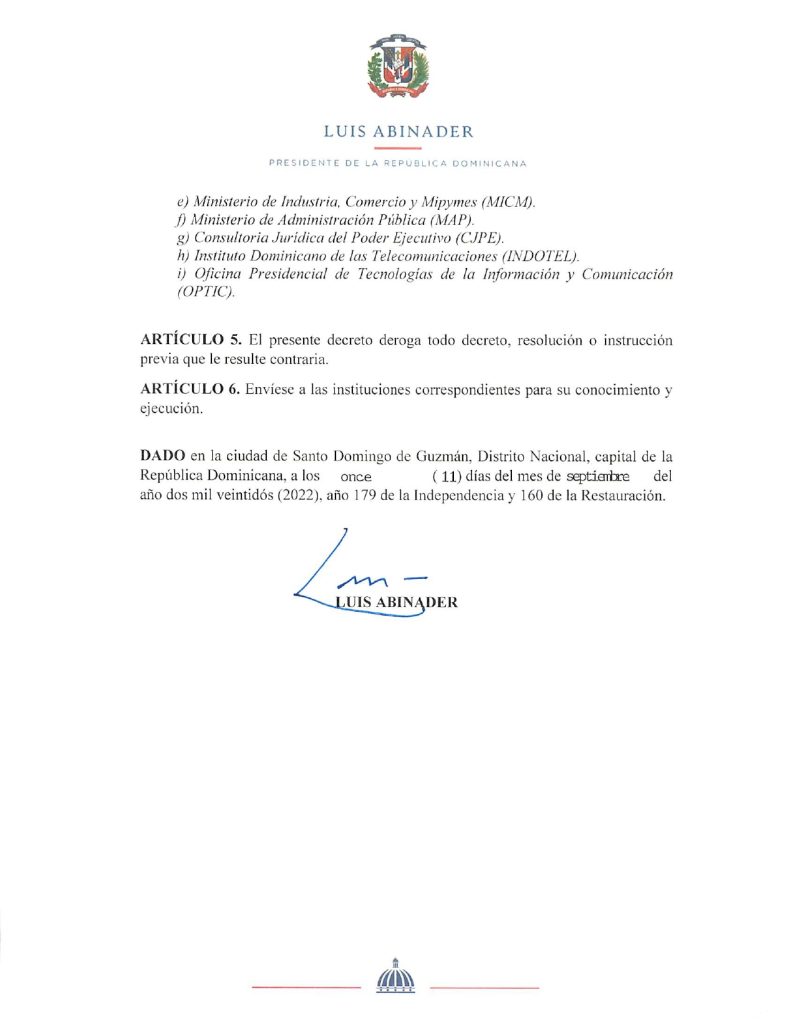 Este Decreto modifica el artículo 2 del Decreto núm. 71 -21, de fecha 8 de febrero del año 2021, para que en lo adelante se lea como sigue:
