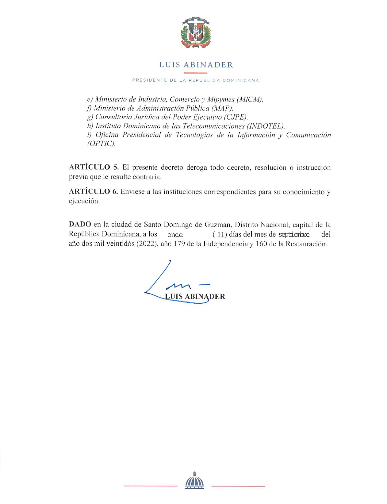 h) Instituto Dominicano de las Telecomunicaciones (INDOTEL).